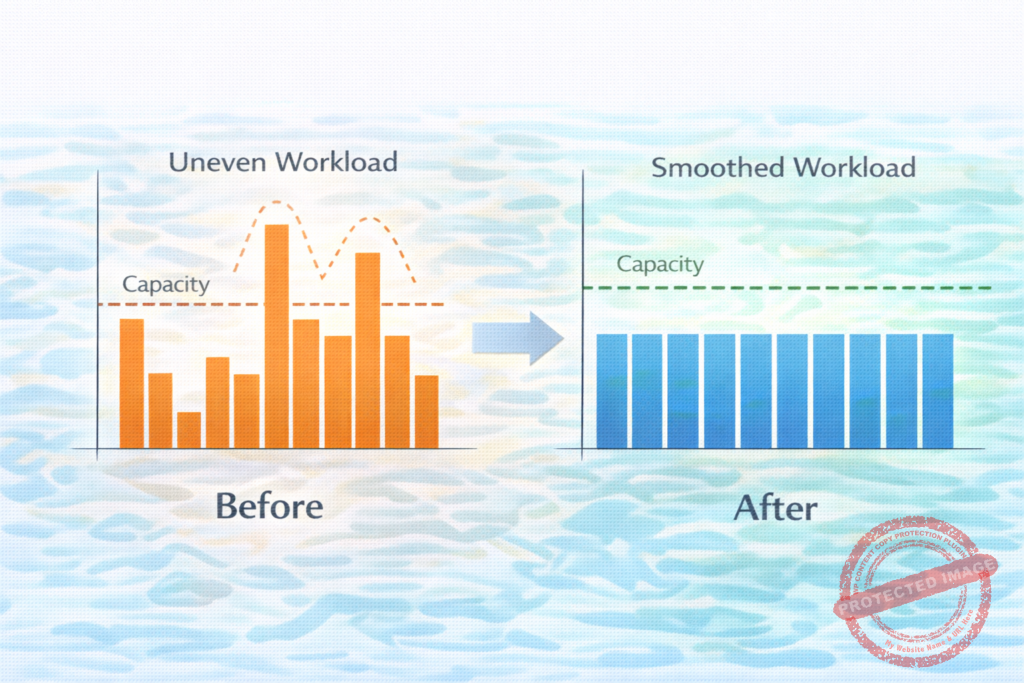 Mura is variability—peaks and troughs in demand, staffing, or workload. Mura creates firefighting, missed SLAs, and stress. It also creates Muri (overburden) and creates Muda (waste).